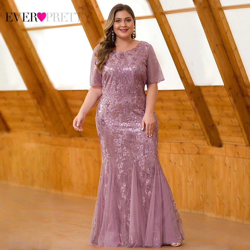 HIGH QUALITY Mermaid Evening Dresses Plus Size Ever Pretty Sequined Short Sleeve O-Neck Sexy Formal Dresses Even