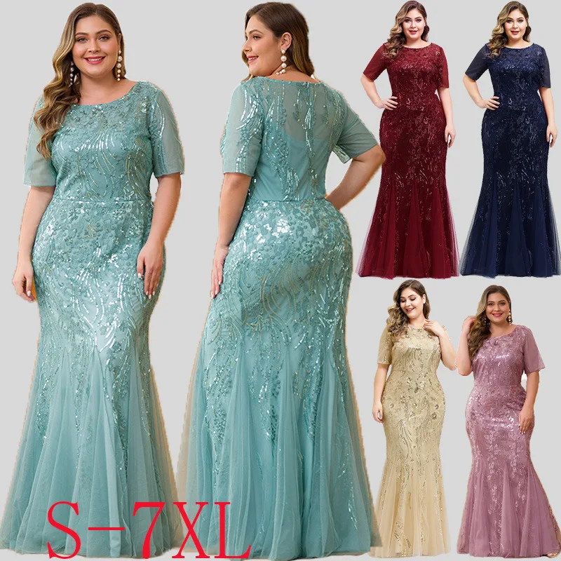BEST Mermaid Evening Dresses Plus Size Ever Pretty Sequined Short Sleeve O-Neck Sexy Formal Dresses Even
